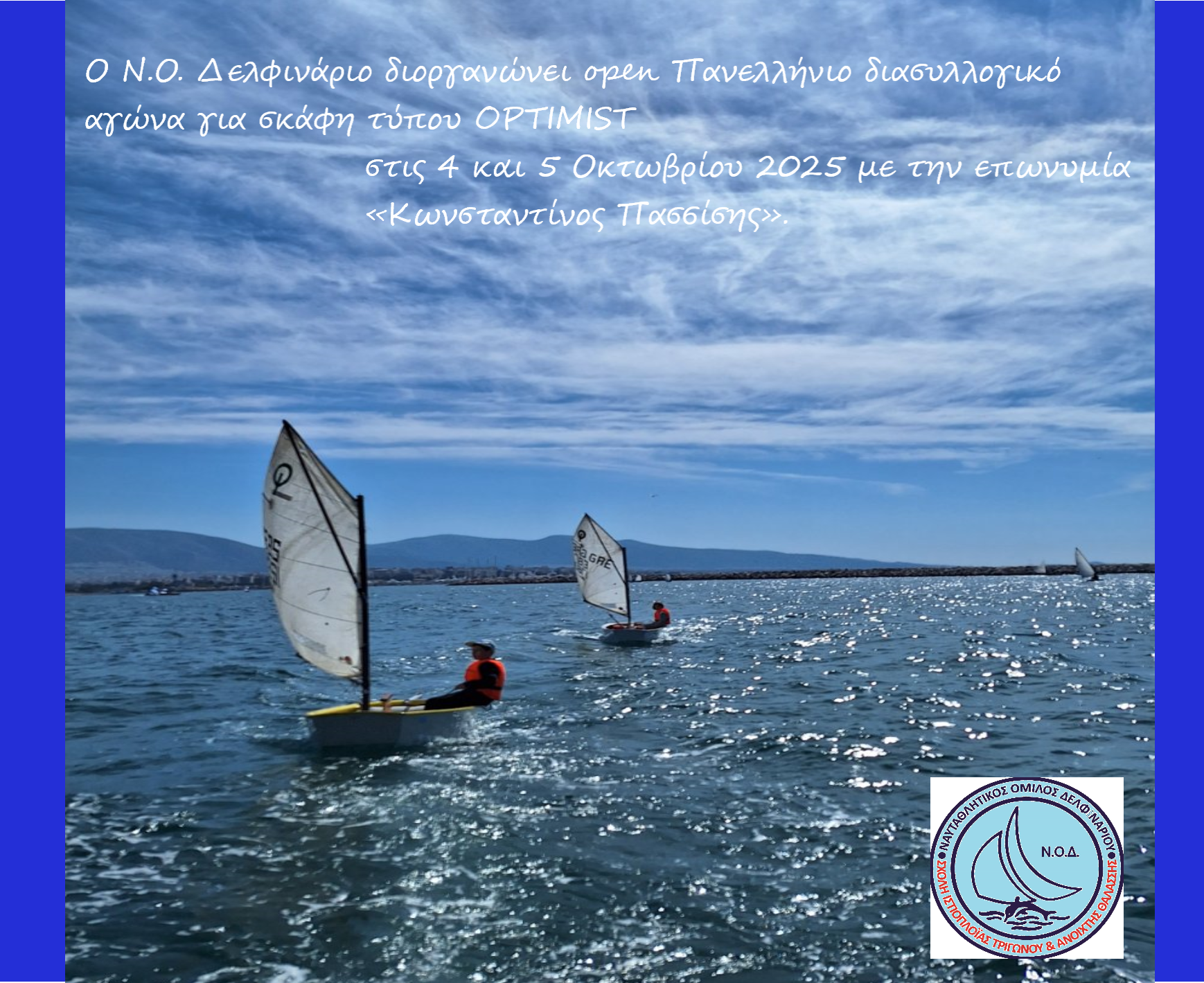 Ο Ν.Ο. Δελφινάριο διοργανώνει open Πανελλήνιο διασυλλογικό αγώνα για σκάφη τύπου OPTIMIST στις 4 και 5 [...]